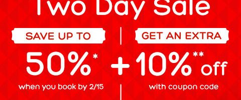 Hotels.com: $40 Off $300 or $5 Off $50+ Select Hotels + 2 Day Sale: Up to 50% Off + 10% OFF